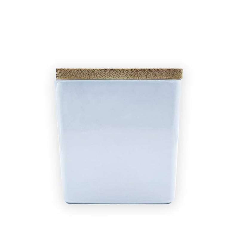 Βάζο για Κερί Λευκό Τετράγωνο 300 ml με ξύλινο καπάκι