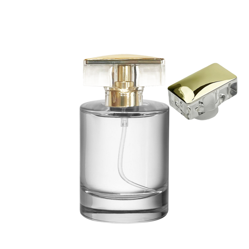 Μπουκάλι υψηλής αισθητικής με χρυσό σπρέι και ιδιαίτερο χρυσό/διάφανο καπάκι.