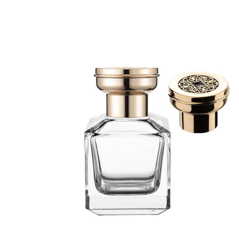 Μπουκάλι υψηλής αισθητικής με χρυσό σπρέι και χρυσό καπάκι με σκαλιστές λεπτομέριες.