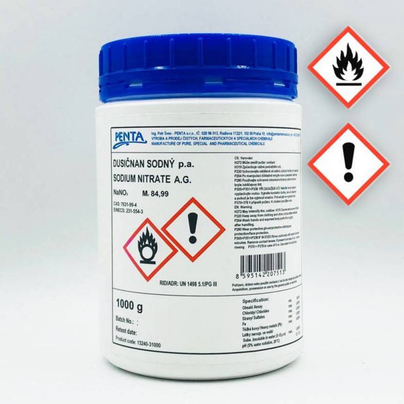 Dangerous substance sodium nitrate (EC: 231-554-3; CAS: 7631-99-4) Hazard statements H272 May intensify fire; oxidiser. H319 Causes serious eye irritation. Precautionary statements P220 Keep away from clothing and other combustible materials. P264 Wash hands and exposed parts of the body thoroughly after handling. P280 Wear protective gloves/protective clothing/eye protection/face protection. P305+P351+P338 IF IN EYES: Rinse cautiously with water for several minutes. Remove contact lenses, if present and easy to do. Continue rinsing. P370+P378 In case of fire: Use vodu to extinguish. 2.3. Other hazards The substance does not have endocrine disrupting properties in accordance with the criteria set out in Commission Delegated Regulation (EU) 2017/2100 or Commission Regulation (EU) 2018/605. Substance does not meet the criteria for PBT or vPvB in accordance with Annex XIII of Regulation (EC) No. 1907/2006 (REACH) as amended. Dust may form explosive mixture with air.