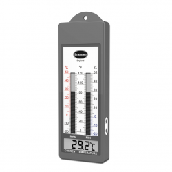 Waterproof, digital max min thermometer. Rugged, digital max min thermometer, uniquely designed by Brannan to resemble traditional liquid-in-glass style, quick-set, push-button max min thermometers. Triple display shows maximum, minimum and current temperature simultaneously. Waterproof design – suitable for indoor or outdoor use. Hygienic and easy to clean – this is perfect for labs, catering and more.